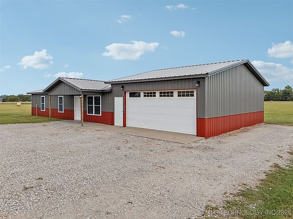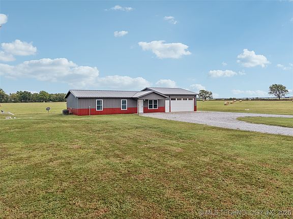 Charming 3-bedroom, 2-bath metal home on 0.69± acres in the Chouteau-Mazie School District—ideal for anyone seeking low-maintenance living with room to stretch out. This well-kept home features an open-concept layout, durable laminate flooring, and a clean, neutral color palette throughout. The kitchen shines with granite countertops, subway tile backsplash, stainless steel appliances, and ample cabinetry. A dedicated laundry nook, and private primary suite add everyday comfort.
