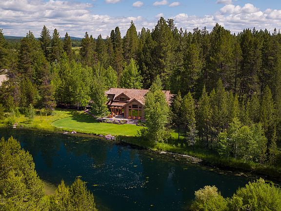 Inspirational Lakefront Setting. You will find a true haven of peace & tranquility in this authentic log home estate, artfully designed by noted Architect Janet Jarvis. Located in historic Vandevert Ranch on the edge of Rainbow Lake with only the finest quality finishes: integrated plaster walls, Alder floors & cabinets, rustic pine vaulted ceilings, Montana stone fireplace, Rajah slate, hand forged hardware, solid Alder doors, & Kentucky Blue stone walkways/patios. Big picture windows, Great hall entry & dining room w/a magnificent 3 tiered iron chandelier & exposed beams, chef's kitchen, large main level master suite w/library/den & fireplace. Plus new 20 KV back-up generator, furnace & hot water system. This private gated enclave of only 20 homesites w/about 350 acres of shared common & open space offers endless trails along the Little Deschutes River, surrounded by meadows & Cascade mtn views. Ranch amenities include equestrian facilities, community barn & dog kennels. Golf Nearby.