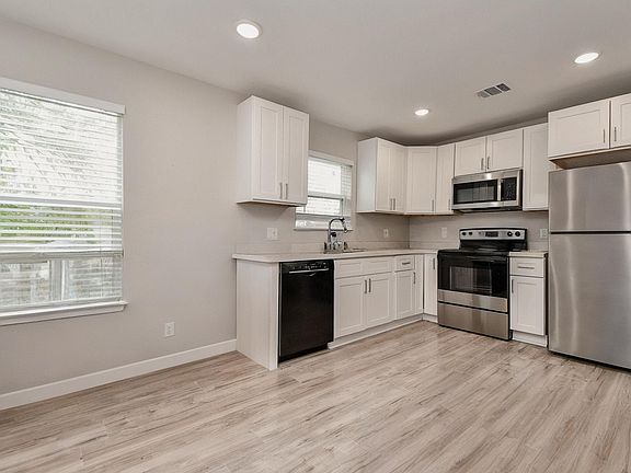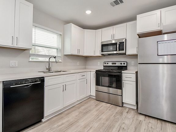 Located at 5615 Barremore Street #B, this inviting home offers a blend of comfort and convenience. With one bedroom and one full bathroom, the residence is thoughtfully designed to provide a welcoming living experience. Upon entering, you'll be greeted by a bright living room that flows seamlessly into the kitchen. The kitchen, connected to the living space, features modern amenities and an efficient layout for everyday living. A conveniently located utility area near the bathroom includes a washer and dryer, and a refrigerator and microwave are also included. The home's design extends to the outdoors with a spacious yard, ideal for relaxation or entertaining. One parking spot on the property and garage storage space are included for added convenience. Conveniently situated near I-45 and Highway 90, this residence offers easy access to major transportation routes, shopping, dining, and entertainment options.