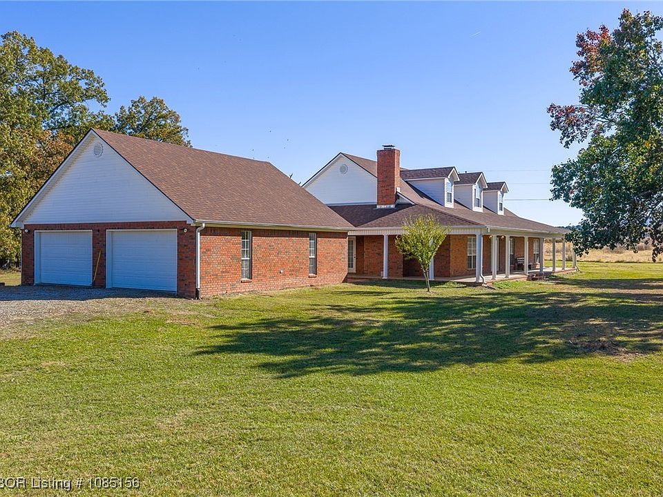 Escape the city limits without sacrificing convenience! From peaceful mornings on the porch to summer days by the pool, every inch of this property invites you to slow down and enjoy the good life. This truly spacious and beautiful home sits on a private 4.95-acre estate, offering the peace of country life while being just a 20-minute drive to the heart of Fort Smith for shopping, dining, hospitals and more! The interior is defined by a sprawling main living area, featuring a cathedral ceiling, engineered wood flooring, and a brick Country Flame Fireplace that provides ducted blowers on an individual thermostat. The well-appointed kitchen showcases an abundance of cabinetry, exquisite granite countertops, stainless appliances, bar seating, a large dining area, and a walk-in laundry room. The oversized primary suite serves as a true sanctuary, complete with a generous walk-in closet, an ensuite bathroom featuring a jacuzzi tub and a separate walk-in shower with glass doors, and a flex space suitable for a second walk-in closet, home office, fitness nook, etc. The two secondary bedrooms are notably spacious with great closet space, offering plenty of room for family or guests. The property incorporates an oversized 33'x33' detached garage with dedicated safe room with toilet and sink, and several outbuildings, to include a substantial 40'x60' shop equipped with a new roll-up door, new concrete slab floor, and electrical, perfect for a business, hobbies and storage needs. Outdoor amenities feature a fenced in-ground pool with a newer 2024 liner from Burton, wrap-around porch offering panoramic mountain views, and natural elements - a small creek bordering the rear boundary and fully functioning water well. HVAC, roof and gutters are 2024. If you’ve been dreaming of space, privacy, and country views without giving up convenience, this property has it all! This home isn’t just a place to live - it’s a place to love. Call your favorite realtor to schedule a showing today.