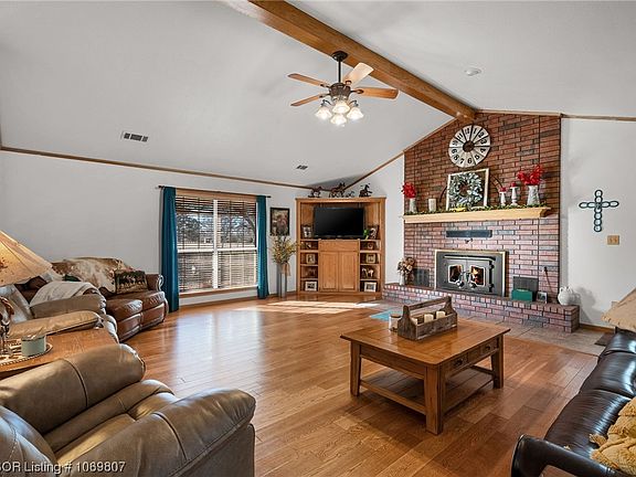 This fantastic custom-built farmhouse sits on 4 acres offering the perfect country sitting. This home will meet all your needs with its great space and amazing outdoor living. Featuring 2904 square feet w/ 3-bedrooms and 2-bath home with an expansive living area, vaulted ceiling, and cozy fireplace. The Country Flame Fireplace provides blowers that are ducted and on an individual thermostat. Oversized master and en-suite with a connecting bonus room for home office or gym. High-Speed Internet Service is offered by Wave Rural Connect, your home office use. A storage room is placed at the end of the hallway for easy access to your overflow. Great size kitchen featuring granite countertops, updated features, and stainless steel appliances. This kitchen features enough space for that king-sized family table. For the outdoor enthusiast, the wrap-around porch and breeze-way connecting the home and garage are a fantatstic feature. The inground pool with beautiful established flowers and landscaping makes this your summertime oasis. Right now these flowers & shrubs are not at their peak, however, come spring they will make their appearance. The property features a working water well for a good secondary water source. The large detached garage (32X32) features a safe room that also doubles as an outdoor bathroom. There are 2 septic systems in place, 1 for the home and 1 for the garage. Many custom features on this home and too many features to list make this home a must-see. This home is sitting in a great location just minutes from Fort Smith while still maintaining that country vibe. Don't let this one pass you by, make an appointment to view this beauty today!!