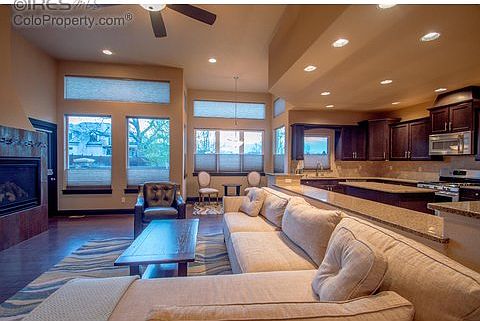 $5000 closing cost allowance. Luxury ranch home in Fossil Lake Ranch in SE Ft Collins w/ Mountain Views! Wood floors in main areas, granite countertops in kitchen, stainless steel appliances, vaulted ceilings & very open floor plan. Basement is fully finished w/ two bedrooms, bathroom & rec room w/ theater hook ups. Third bedroom on main level has French doors & makes a great office. Garage is fully finished w/ drywall & paint. Access to Fossil Lake Ranch pool available for an additional fee.
