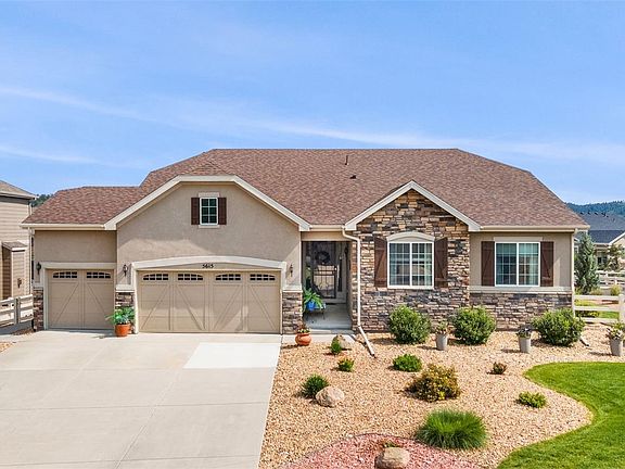 Mountain Views, custom extended deck, professionally low-maintenance landscaping, single-story dream home in Crystal Valley. This spacious corner lot home is much larger than others in the neighborhood and perfectly designed for family and entertaining living—featuring a thoughtful layout and an open-concept great room with a gas fireplace. The chef’s kitchen boasts high-end custom upgrades, a walk-in pantry, and ample space for entertaining.| Walk out onto the covered deck with those breathtaking views for miles, enjoy dinner or a drink, and watch the sunset. | Engineered hardwood, tall ceilings, and recessed lighting create a warm and elegant ambiance throughout. A front office adds versatility for work or study. | The primary suite is a spa-like retreat with a luxury bath with double vanity, and a massive walk-in closet. | Three oversized bedrooms give everyone room to spread out. | An actual side-by-side three-car garage, a rarity in the community. A corner lot with only one neighbor, this home offers privacy, along with stunning views of the hillside and mountains. | Crystal Valley is one of Castle Rock’s most sought-after neighborhoods, with a community clubhouse, pool, playgrounds, and miles of trails. This home is situated across from Rhyolite Regional Park and is just minutes from the Crystal Valley Ranch Recreation Center. | A rare chance to own a better-than-new home with size, views, and neighborhood amenities that everyone will love!