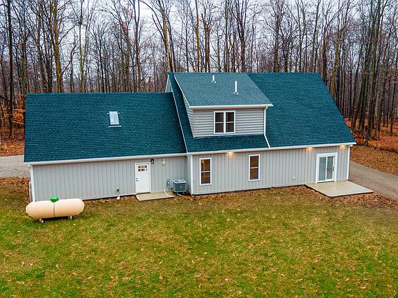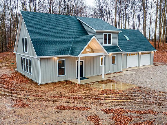 How about a Brand New High Quality Construction Home for 2024? Situated back a long driveway, you will find this serene & private new build on fully wooded 5 acre lot. Absolutely breathtaking great room with vaulted ceiling & exposed beams. Beautiful large windows allow the natural light in. Top of the line kitchen w/ appliances, quartz countertops, & soft close doors/drawers. Spacious First floor primary en-suite with tile walk-in shower. 1st floor laundry and half bath. Upstairs, you will find 2 additional bedrooms, full bath, & 32x24 bonus room, perfect for extra flex space or additional bedroom. Oversized 2 car garage. Don't miss out on this spectacular new build home. Located 45 mins North of Columbus. Extreme privacy and seclusion.