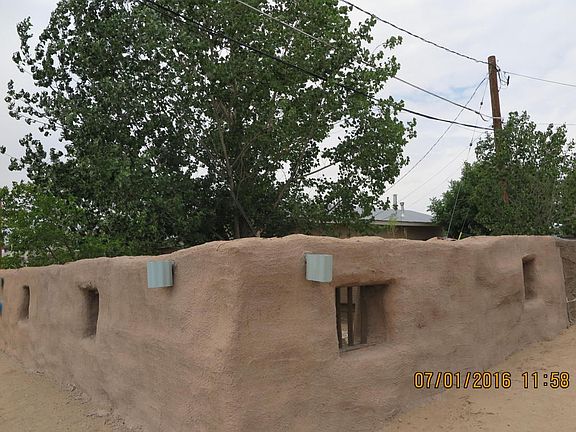 Renovations underway on this cute little Casa on oversized lot. Featuring hardwood floors, updated baths, some thermal windows, galley kitchen, separate utility room, good sized bedrooms. Front courtyard with straw bail fence, roses, tree's, storage shed in rear, large adobe storage/workshop or could be guest house in rear. Sold in as is condition with no warranties implied or expressed.