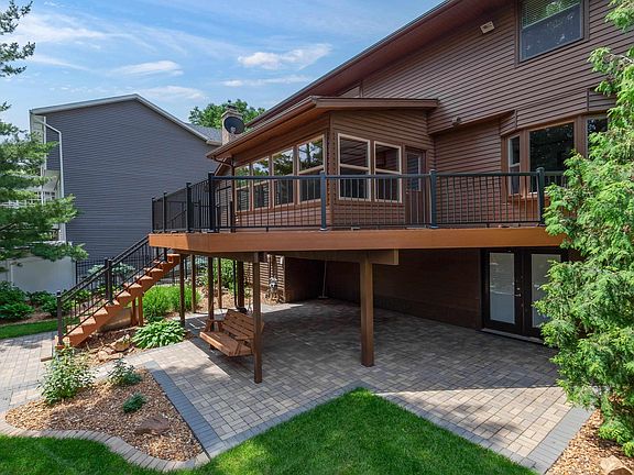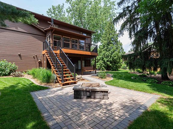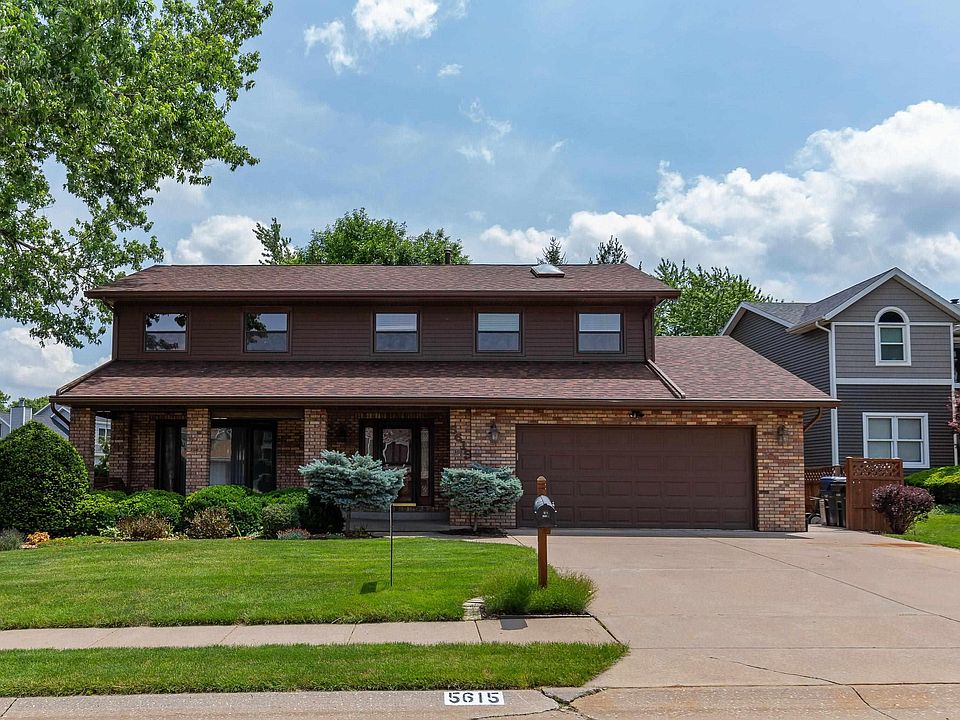 2-story home offers 4 bedrooms, 4 bathrooms, a 2-car garage, and ample space! It features modern upgrades and beautifully maintained outdoor areas. The front porch, with remote fans and retractable sun shades. Landscaped backyard includes a patio with a gas firepit, a serene water feature, and a remodeled deck with aluminum railing. Under the deck, there’s a brick patio. Inside, the first floor features a bright family room with a bay window and corner fireplace, a four-season sunroom remodeled in 2018, and a 2016-upgraded kitchen with quartz countertops and stainless appliances. The dining and living rooms, both with bay windows, add a cozy touch. Tile floors span the kitchen and dinette area. Upstairs, four spacious bedrooms and two full bathrooms, remodeled in 2018, offer luxurious amenities. The primary bedroom has vaulted ceilings and an ensuite bath with a heated floor, new cabinets, and a tiled shower. The other main bath includes new cabinets and a tub with tiled surround. The finished basement includes a carpeted laundry room with washer and dryer, walk-out access to a brick patio, a utility half bathroom, and additional storage. The basement workroom provides access to the ash drop and an exhaust fan. Buyer and/or buyer agent to verify all information. Measurements approximate.