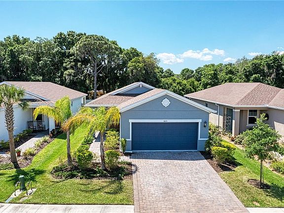 READY NOW! Built in 2019 this Energy Efficient home has everything you have been looking for! This Meritage Poinciana model offers 4 bedrooms, 2 baths and a 2 car garage with over 1,600 Sq. Ft. of well thought out living space! Enjoy a cup of coffee on the cute front porch or a glass of wine on your screened lanai looking out to the private and fully fenced yard with great south exposure boasting views of the majestic Spanish Oak trees backing up to a horse farm. The entertainer's kitchen offers a large center island, gas range, quartz counters, tile backsplash and 42" Timberlake cabinets with hardware. The beautiful and easy to maintain wood look tile runs throughout the main living areas with warm carpet in the bedrooms. The convenience of a separate laundry room located off of the main living area and lots of closets for storage. Make life a little easier with smart home technology including ring doorbell and wireless A/C control. This great home has in-wall pest system, gutters, downspouts, tankless gas water heater and reclaimed water for your irrigation. Eaves Bend at Artisan Lakes offers a resort style swimming pool with fire pit, fitness center, dog park and playground. A friendly community conveniently located west of I-75 just 5 minutes to the HWY making commuting a breeze. This up & coming area is perfectly situated just minutes to the new Publix shopping plaza with future shops, homes and commercial spots coming soon. All of this just a short drive to Lakewood Ranch, UTC Mall, Ellenton Outlet Mall and our world famous Gulf beaches. Enjoy!