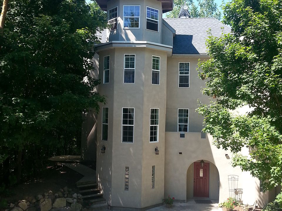 Live out your dreams as a king or queen in your own beautiful hilltop castle! Surround yourself with beautiful views in this newer, castle-inspired home featuring 3,294 square feet of living space and an open floor plan. Highlights of this one of a kind home include: ~ 4 bedrooms ~ 4 1/2 bathrooms ~ Beautiful oak flooring ~ Custom cabinetry ~ 16' x 20' elevated deck with gorgeous views ~ Beautiful walled courtyard with fountain and perennial gardens ~ Heated two-stall garage ~ Durable stucco finish ~ Large attic for storage ~ Additional kitchen on the lower level, allowing the ground floor to be used as a mother-in law suite or for rental income if you choose. Alternatively, the second kitchen is wonderful for canning, game processing, etc. This amazing and unique home is located on 23 secluded acres of beautiful rolling hills, with a mix of wooded and grassy areas and lots of outbuildings. This property is a dream come true for homesteaders, sportsmen, or anyone who values privacy! Highlights of this amazing property include: ~ Fenced-in pasture ~ Large vegetable garden area ~ Small, charming log guest cabin ~ 24' x 48' pole barn perfect for storing equipment and recreational vehicles, with a 10' x 48' lean-to providing additional sheltered storage ~ Additional 10' x 44' pole barn lean-to featuring quaint 1 bedroom, 1 bathroom living area ~ Older, traditional barn, great for additional storage ~ Hunting blind and three tree stands allow you to take advantage of great hunting opportunities ~ Hill leading up to the house features heated concrete for easy access in winter ~ Outdoor wood boiler to heat house, garage, and hill. Close to Ludington and Pentwater in Riverton Township. Don't miss your chance to own this unique home!