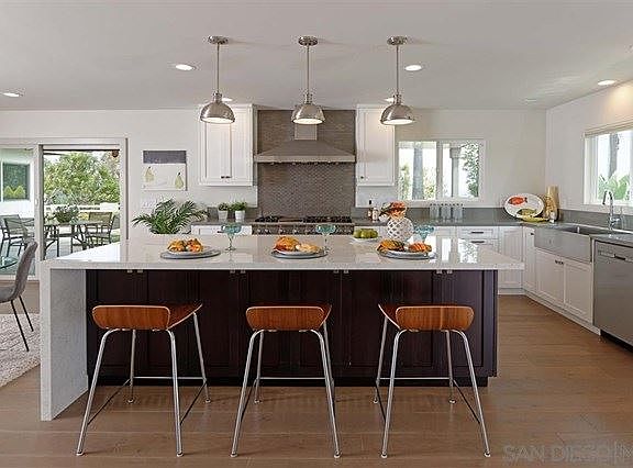 Refreshing soft modern with flawless presentation, this stunning home with panoramic ocean, bay and downtown skylines was extensively renovated in 2015 with unequaled design details throughout. Second story Master Suite addition with luxurious bath, European White Oak floors, Viking Professional Grade kitchen with custom cabinetry, 9 FT island with waterfall Quartz, all new systems, 200 amp panel. The home boasts an open floor plan that is interactive for best of indoor/outdoor living and entertaining! Neighborhoods: La Jolla Equipment: Garage Door Opener, Range/Oven Other Fees: 0 Sewer: Sewer Connected Topography: LL 2019-06-14