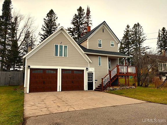 Charming, well maintained 3-bedroom 2 bath home located in Calumet. Many updates over the last year; New shingles on the main roof, new garage doors and door openers, some new exterior lighting, new flooring in the family room, primary bedroom and in areas upstairs. This home has a bright, cheerful kitchen, and large living and family rooms that provide plenty of space for entertaining. There is a large deck in the back of the home, perfect for relaxing and summer barbecues, overlooking the private fenced in back yard. Off the main floor is the primary bedroom with a deep closet and full bathroom. In addition to the three bedrooms, there is another room off of an upstairs bedroom that could be used as a bedroom, playroom, or storage. Enjoy the inviting sauna that has also been updated with a new Harvia sauna stove and flooring. The deep two-car garage provides great parking and plenty of storage space and has a workshop/room off the back. This property also has an additional vacant lot across the road from the home. Information believed accurate but not warranted. Buyer recommended to inspect property, verify all info & bears all risks for any inaccuracies. Tax info subject to change. All measurements (acres, lot size, square footage etc.) are estimated.