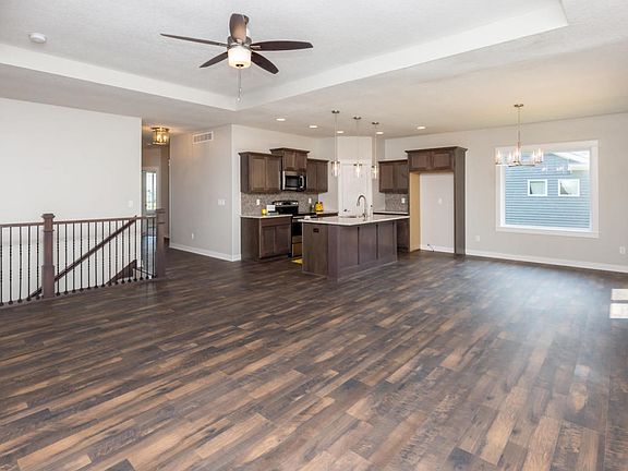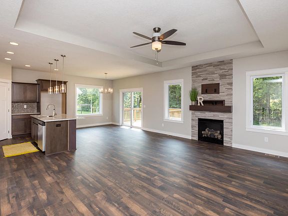 This new construction home built by Happe Homes features the open Aruba plan with four bedrooms and three baths. Over 2,400 square feet of living space includes a finished walk up lower level with egress windows, family room with wet bar, one bedroom (optional 5th bedroom) and three-quarter bath. The great room boasts hardwood floors throughout and a full stone gas fireplace. Master bedroom is a must see with bath and walk-in closet. Main floor laundry/mudroom. Three car garage.