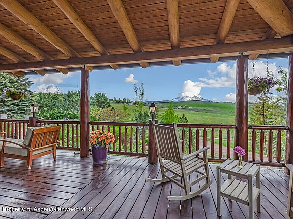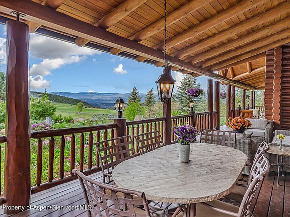 Look no further for the perfect equestrian estate with senior water rights, corals, loafing sheds and several greenhouses for sustainability. Close to town, yet on approx. 45 acres with 360-degree views of Mt. Sopris and the Roaring Fork Valley, this gated, log-cabin estate has Ralph Lauren appeal with great entertaining flow, wraparound porches and an updated modern kitchen. The primary bedroom suite includes a seating area and fireplace with a large ensuite bathroom and 2 walk-in closets. The home also features 2 home offices, a gym with plunge pool, a large caretaker apartment and a 3-car, attached garage. A separate, oversized ''shop'' with ample parking for farm equipment, toys, multiple SUVs or storage completes the package!