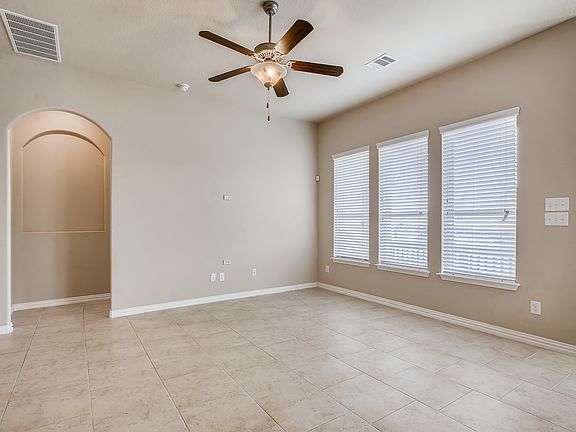 Prepare to fall in love with this luxurious 4 bedroom, 3 bathroom home nestled in a quiet cul-de-sac in the highly coveted, Crossing at Havenwood. A cove ceiling entryway boasting neutral tones, tile flooring, and arched doorways flows through a hallway and into shared spaces. At the end of the hallway is a formal dining room with elegant chandelier lighting. The open-concept living, kitchen, and dining area boasts vaulted ceilings, architectural niches, and large windows. The kitchen is the heart of the home, equipped with stainless steel appliances, sparkling granite countertops, an expansive middle island, and a breakfast bar. The adjoining breakfast nook enjoys window seating and overlooks the private backyard. Beyond the living room is a private primary bedroom designed with an en-suite bathroom inclusive of double vanity sinks, a soaking tub, a separate shower, and an immense walk-in closet. Additional highlights include a laundry room and an oversized 2 car garage. Enjoy easy access to highways, shopping, restaurants, entertainment, historical Gruene, and so much more!