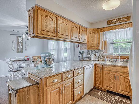 THIS IS IT! That quiet country home you have been searching for! This lovely 2 story home has 3 bedrooms and 2 full baths and is situated on over an acre of land on a quiet country road. Step into the bright and open living room with laminate flooring that continues into the dining room area. Kitchen and dining room are separated by a fabulous granite breakfast bar counter top with stools. Granite continues into the kitchen with not only countertops but a granite sink as well. This kitchen is a dream with its abundance of cabinets and easy access to everything! This home offers both a living room and family room, offering tons of additional space for get togethers! Family room that has been updated with new flooring and paint has a cozy wood burning fireplace in the back and connects to beautiful sun room and covered patio that looks out over spacious back yard, all perfect for entertaining! The main bedroom on upper floor features walk-in closet and attached entry to upstairs bath. The outbuildings include an attached oversized 2 car garage with new poly pro surfacing and an additional detached garage for storing all those extra toys. Updates include: fresh paint throughout, new light fixtures and new tile in upstairs bathroom. This is a MUST-SEE to appreciate property.