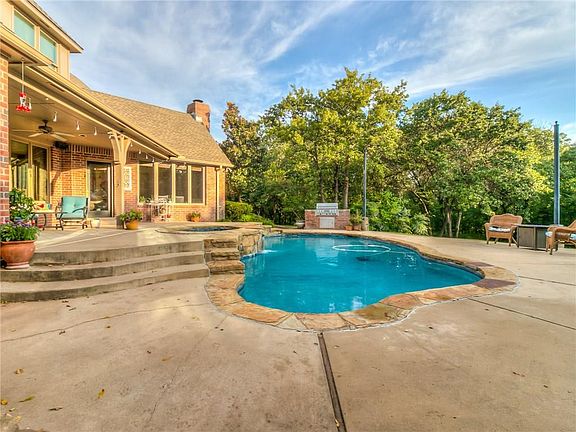 Gorgeous Home on Quiet Wooded Acreage! Stunning entry w/ staircase, formal dining, living room and study. Chef's kitchen offers Thermador commercial gas cooktop, double ovens, stained wood cabinets, granite counters, on demand hot water and large island. Kitchen opens to breakfast room and family room surrounded by windows with a beautiful view. Cozy family room with fireplace, view of amazing back yard + wet bar/mini beverage area with wine refrigerator and ice maker! Study w/ fireplace and built-in bookcases. Over-sized Master suite w/ door to patio + updated spa bath with steam shower + heated tile floors + large walk in closet w/ heated floor + double vanities, Jacuzzi tub. Upstairs: media/game room + activity room/5th bedroom w Murphy bed + two bedrooms with Jack/Jill bath + private bedroom/bath. Backyard entertaining oasis with pool & hot tub, built-in grill + plenty of trees for quiet afternoon naps! One amazing home!
