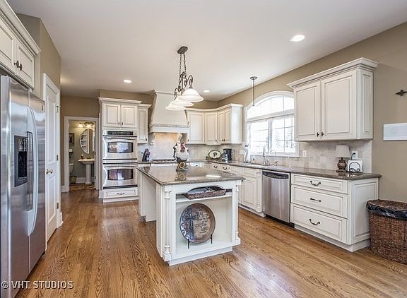 High-Sighted-Paradise Grove is also a great description of this area- totally custom & ALMOST NEW Brick/Stone/Cedar Stunning Home. It has 4 bedrooms- plus den-Finished English basement-3 car garage and sits on 1.5 Acres of rolling lawn and mature trees. Built by one of the area's best builders with crown molding, transoms, stunning built in book cases, 3 fireplaces one brick from floor to ceiling, gourmet kitchen w/granite counters opening to family room & large deck to back yard, dual stairways, hard wood floors, 9ft , vaulted & trey ceilings, 5 full baths, over sized bedrooms, luxury Master w/spacious bath & walk-in closet, one bedroom has closet access to walk in attic which could be turned into a studio/bedroom/whatever. Finished basement has a bedroom, full bath, family entertainment area, and fireplace. Homes this new and custom in such an upscale area, w/sought after Prairie Ridge High school are very hard to find. Don't miss this beauty it has every possible amenity, road behind home is not busy at all. Come See