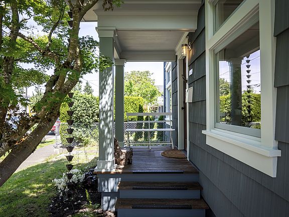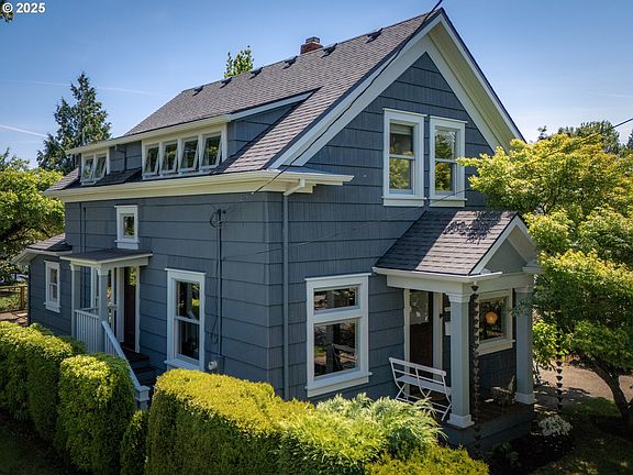 This 1908 Overlook Farmhouse has been lovingly cared for and thoughtfully updated by a designer and craftsman duo since 2000, with recent updates both inside and out. When purchased, the home had two full living quarters, separate entrances & addresses—5616 & 5618 N. Campbell. To accommodate family needs, the upstairs kitchen was removed, but the original plumbing remains, making it easy to convert back into a separate unit.Renovations quietly honor the home's heritage while prioritizing sustainability, period authenticity, and creative reuse—blending history with craftsmanship and care. It’s a light-filled space where high ceilings and clean lines create a sense of openness and ease. Natural light fills every room, thanks to dual-paned wooden Marvin windows. Fir floors, restored classic moldings & trim, and original details add character and warmth, while thoughtful updates add a fresh, modern twist. The main floor features living and dining rooms at the front, and a kitchen, bath, mudroom, and flex bedroom at the back. Upstairs, three rooms and a full bath offer flexible space for bedrooms, studio work, or rental potential. The basement includes a separate outdoor entrance, laundry, and ample room for storage, a workshop, or creative projects.Outside, there are flower, herb, and vegetable gardens, plus a newly planted shade garden. An existing concrete patio supports outdoor dining and offers room to grow—consider a greenhouse, a covered seating area or a garage with ADU. This home is only steps away from The Stacks Coffeehouse, The Mud Room Ceramics, Letterpress PDX, Open Wellness, Urban Pilates, The Old Gold, Full Bar, Double Mountain Brewery, Backyard Social, Arbor Lodge New Seasons, Peninsula Park and Rose Garden. Max is nearby as well as major bike routes both south & east. Downtown is 7 minutes and the Adidas HQ only .5 miles. This home has a simplistic richness that creates calm in these hectic modern times—full of light, possibility, and soul. [Home Energy Score = 4. HES Report at https://rpt.greenbuildingregistry.com/hes/OR10237936]