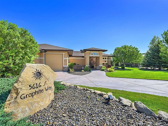 Beautiful Custom built home with a breath taking view. Enter the home through a gated private courtyard. Home features large great room with a floor to cieling cultured stone fireplace, open kitchen great for entertaining. Kitchen has thick granite slabs, heated floors. Large windows throughout to enjoy beautiful view of mountains and valley below. Master bedroom features his and hers walkin closets w/builtins. Private patio, jetted tub, steam shower, infrared sauna, heated floors. Two en-suits with trayed ceilings, walk in closets, heated bathroom floors, one with a private enterance. Four car garage w/built in cabinets, work bench, non stain epoxy floors. This home fetures so many upgrades, too many to list. Mature landscaping and fruit trees.
