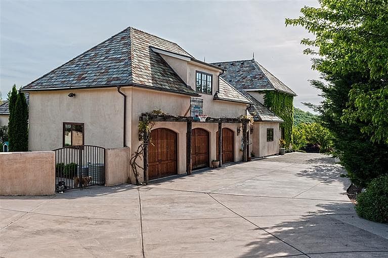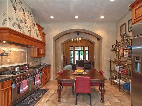 Stunning French Country Chateau located in the prestigious Saddle Ridge Estates. No expense was spared in building this beauty, starting with the 100 year slate roof and the copper gutters, finials and downspouts, beautiful wood French doors and windows, hand crafted wrought iron fixtures and railings, hand-hewn exposed beams from Nova Scotia, Amish hand scraped hickory floors, plaster walls throughout. Elegant Kitchen outfitted for grand entertaining with a 60-inch Wolf Range w/six burners, griddle and double ovens & a walk-through Butler's pantry. Master suite on main level. 2 Bedrooms upstairs each feature a private bath and walk-in closets. Above the 3 car garage is an additional room for an office or game room. This home features 3 fireplaces inside and 1 outside and much more...
