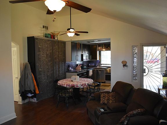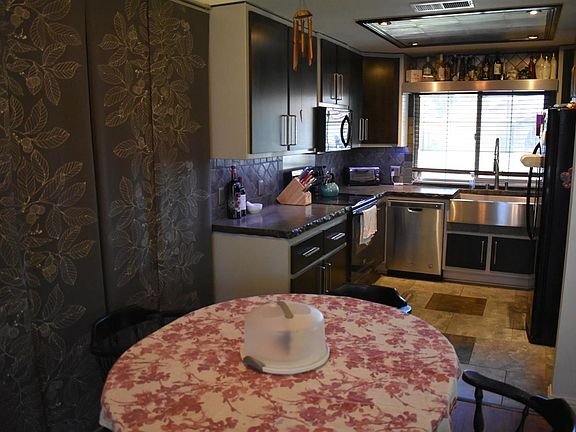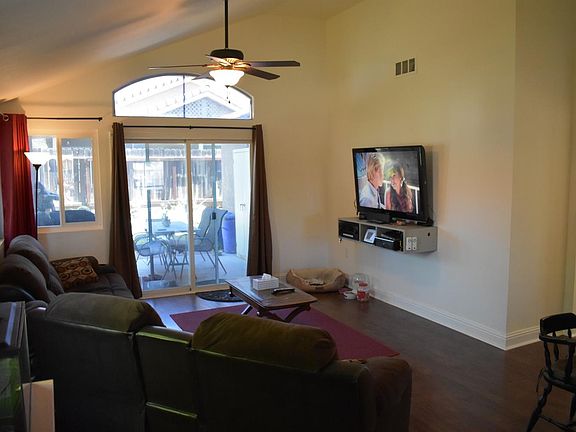 This cul-de-sac lot has so much to offer. An updated kitchen with added pantry space stained concrete counters, tile floors, and a farmhouse style sink that looks out to the front yard and the neighborhood park. The kitchen leads to a cozy living room that gets magnificent morning sun. There are 3 bedrooms, two of which have custom Murphy beds leaving plenty of room for activities. The master bedroom is a large cozy space with updated counters and flooring, dual sinks, along with a his and hers closet. The main bathroom has been updated with new flooring, vanity and a tiled shower. A walk through laundry room leads into the garage. UpdatedAC unit, and a spacious back yard with raised flower beds along the back fence, this is the perfect house to turn into your home.