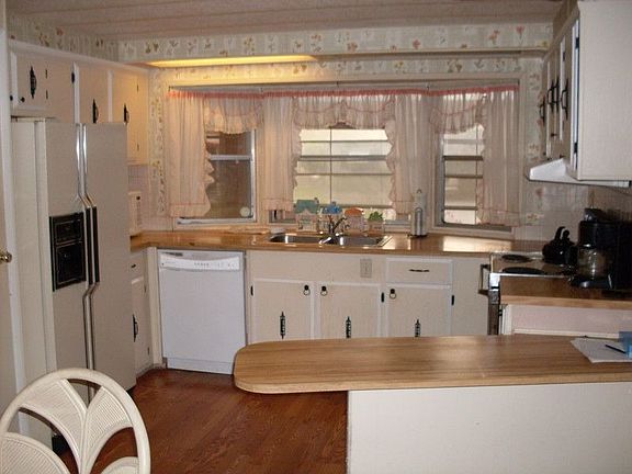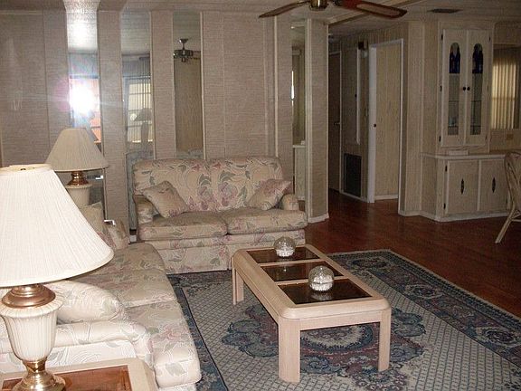 This is a 2 bed/2bath double wide, located in Windmill Manor. Lot rent is $530/month, plus cable, water, sewer, trash and taxes. Lawn care is included. This home has wood floors, furnishings, appliances, fresh paint, lush landscaping, new dishwasher, side-by-side refrigerator, screened lanai, large bedrooms, tons of storage space and MORE!!
