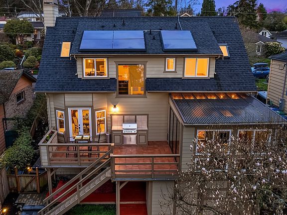 This 1928 Craftsman style home offers urban sophistication in a tranquil setting. Sited on a tree-lined street in West Seattle's iconic Seaview community, it's close enough to the action in "the Junctions" to enjoy city living at its finest, yet neatly tucked away from the hustle & bustle. The sellers have made many smart renovations to the home - adding a beautiful 4-season sunroom, transforming the kitchen from quirky to sophisticated and, in true Craftsman fashion, adding seamless transitions from inside to out. Bask in technicolor sunsets & Sound views from spaces created for modern living. Take in the sea air as the seasons change around you. EV, solar, custom shades, accordion windows, walnut floors & mini-splits. This is a must see!