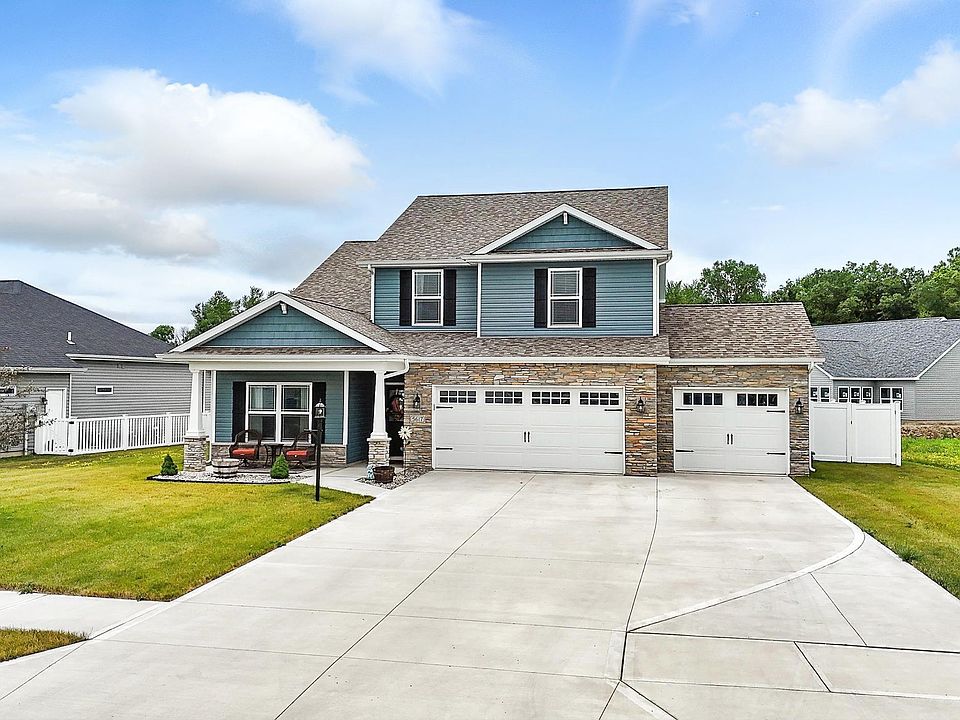 OPEN HOUSE SUNDAY 10/26 FROM 12-2PM! Built in 2021, this beautiful 4-bedroom, 2.5-bath home combines modern design with functional living. The main-floor primary suite offers privacy and convenience, featuring a spacious bathroom with a large soaking tub and a tile-wall shower. The open-concept kitchen flows into a spacious living room with soaring 20-foot ceilings, perfect for gatherings, and all kitchen appliances stay for added value PLUS the washer and dryer remain. Upstairs, you’ll find three oversized bedrooms, a full bath, and a loft ideal for a play area or home office. Outside, enjoy the three-car garage with widened driveway, new vinyl privacy fence, covered patio and charming curb appeal. Enjoy the benefits of new construction without the hassle of building—this move-in ready home truly has it all!