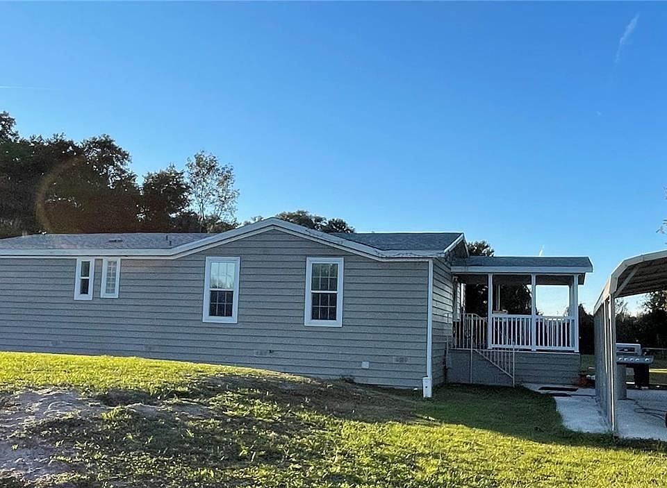 Looking for a 2/2 or 3/2 with land to expand? This property has it all! Country setting manufactured home sitting on 1.74 of an acre, situated at the end of the cul-de-sac. No HOA! The property backs up to a large parcel of woods and deer, hogs and wild turkeys frequent the property. Comes with two utility sheds, a green house and a 2-car metal carport PLUS your very own pond! Horses are allowed. This home features an oversize master bedroom. Previous owner opened up 3rd bedroom to the master bedroom BUT could easily be converted back to the original 3/2 floorplan. The renovated kitchen has an island and includes all appliances. Open and airy Great Room/Living Room perfect for gatherings or entertaining. Move-In ready! Additional features include a front porch, large wooden deck, new roof (2020) and a new water treatment system that will convey with the property. Centrally located between Orlando/Tampa; just minutes from Lakeland Square Mall, I-4 and other major shopping centers. Come by and see for yourself this natural beauty, enjoy the PEACE and QUIET, Escape the Rat Race and savor your space! Schedule your showing today!