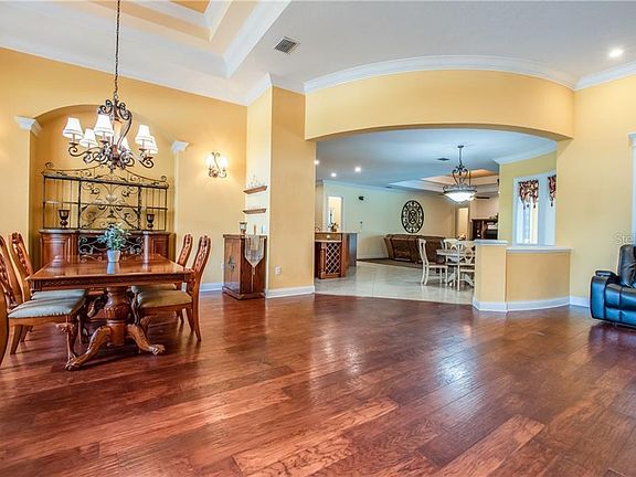 This stunning CUSTOM BUILT 4br/3.5ba/3cg + POOL home is an absolute MUST SEE! Built by Duane McQuillen in 2006, this incredible one story home offers 3290SF of living space with loads of UPGRADES and extras! Nestled in the intimate and very private GATED community of Grandview Landings, this home sits on a huge .57 ACRE LOT with its own irrigation well. Luxury finishes throughout include; HARDWOOD floors, CROWN MOLDING, CUSTOM TRAY CEILINGS, PLANTATION SHUTTERS, a GAS FIREPLACE, and a spacious office/den off the foyer. The GOURMET kitchen is equipped with CUSTOM wood cabinetry, GRANITE countertops, a huge center island with breakfast bar and wine rack, and STAINLESS STEEL appliances. This SPLIT FLOOR PLAN includes a mother-in-law suite with private pool bath. Unwind in your master retreat featuring WALK-IN CLOSETS with built ins and a luxurious en suite bath. Additional features/upgrades include; fresh exterior paint, newer (less than 5 yrs old) A/Cs, a tankless water heater, and handicap accessibility. The gorgeous SCREENED LANAI is stained and sealed with sparkling HEATED SALT WATER POOL and SPA. An entertainers dream! This pristine home is ideally located in the beautiful and exclusive Grandview Landings, close to Lakeland Square Mall, schools, and I-4! Dont miss this custom beauty!