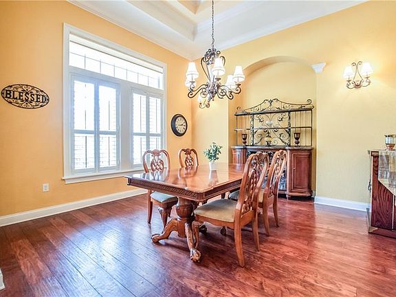 - Interior Features: Ceiling Fans(s), Eating Space In Kitchen, High Ceiling(s), Master Bedroom Downstairs, Open Floorplan, Split Bedroom, Stone Counters, Walk-In Closet(s), Crown Molding, Solid Wood Cabinets, Thermostat, Kitchen/Family Room Combo, Living Room/Dining Room Combo, Solid Surface Counters, Built in Features, Vaulted Ceiling(s), Tray Ceiling(s), Coffered Ceiling(s)