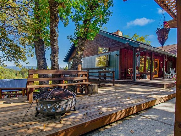 Discover the epitome of luxury living, nestled in the serene landscapes of Murphys, California. This exquisite single-family residence spans an impressive 3,792 square feet of living on 5.3 acres, offering an unparalleled blend of elegance and modern convenience. Step inside to be greeted by breathtaking long-range panoramic views that grace most of the home, creating a seamless connection to the surrounding natural beauty. Main floor is thoughtfully designed with all essential living areas, featuring a beautifully updated kitchen and dining area adorned with vaulted open beam ceilings and stunning wood floors. A pellet stove adds warmth and charm, while a wall of windows in the living room and kitchen ensures an abundance of natural light. You will love spending time and entertaining in this gorgeous well-equipped kitchen. The living room, with its open beam vaulted ceilings and propane log fireplace, serves as a cozy yet sophisticated space for entertaining or relaxation looking out at those gorgeous views. Primary ensuite and two tastefully appointed bedrooms, complete with bay windows, and two full baths complete this level. The downstairs area presents a unique opportunity for major entertaining or an ADU. Additional Barn/shop with roll up door. Expansive outdoor living with front pergola great for large outdoor entertaining. Wrap around multi-level decking. No homeowners'dues.Paid for Solar and Tesla Charger. Both levels are at street level. Enjoy the Historic town of Murphy's, world-renowned Wine Tasting, Bear Valley Skiing just up the road and your choice of outdoor recreation.