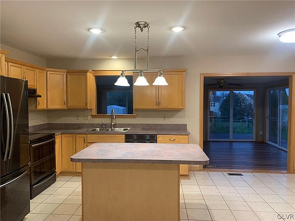 ****HIGHEST AND BEST BY TUESDAY AT 10 AM****Single Detached Home in East Penn SD! Sunk-in living room has a gas fireplace, vaulted ceiling and skylight! Large eat in kitchen right in the heart of the house and has tons of cabinets and an island. The dining room is just off the Kitchen with hardwood floors. Look at the beautiful light that comes into Family room with all the big sliding doors, a perfect place to sit and have that morning coffee! This floor also has a half bathroom for your guests. Upstairs there is a master bedroom with a large walk-in closet two other bedrooms one with a huge walk-in closet as well and a full bathroom. The closet space is amazing! This home boasts a nice big trex deck and flat fenced yard. Has a nice size basement perfect for finishing or storage and 2 car garage. Wonderful location to get on the highway and to stores and restaurants.