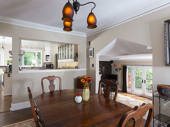 Nestled between the trees lies this sophisticated beauty. Retreat & recharge from the everyday hustle in this beautiful 3 bedroom and 2 bathroom home. The living room has French doors that open to a beautiful deck with custom made iron railings & entry gate. On a warm evening you can open both doors to allow the beauty and sounds of nature in. On a chilly night, you have the fireplace for a romantic quiet evening. The dining room has lots of natural light spilling in from the living room & the kitchen. The beautifully updated kitchen is thoughtfully laid out, has ample light & quality appliances. Just three steps from the kitchen will lead you to a wonderfully lush and private backyard that you will fall madly in love with. The light fixtures throughout the house are loaded with character and accentuate the details of a lovingly maintained home. The third bedroom is currently used as a screening room. Watch your favorite movie or program in a cozy set-up or easily convert back to a bedroom if needed. Need additional space for a home office? It's already there. Just minutes to Montclair Village and Piedmont Avenue, with easy access to Highway 13.
