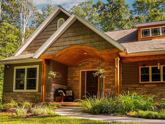 Gorgeous 4-bed, 3-bath ranch home with full finished basement in Michaywe. Open floorplan with vaulted ceilings, wood fireplace, beautiful hardwood flooring and custom kitchen cabinetry. Split layout with large primary suite, complete with walk-in closet, on one side, 2-bedrooms and full-bath on the other. Finished lower level provides ample space with a bar, large family room and private bedroom and bath. The walk-out basement opens up to an enchanting covered patio and backyard area. This property has everything you've been looking for.