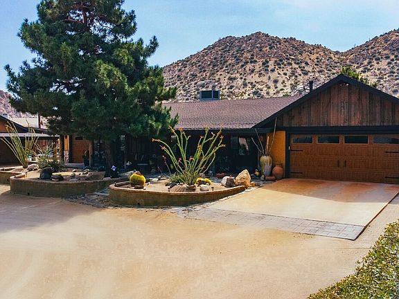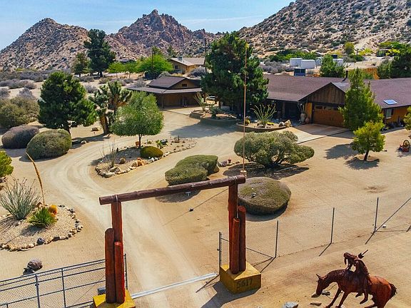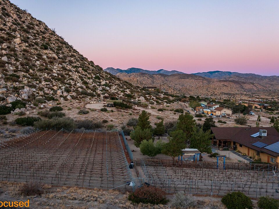Welcome to Classic Rocks Ranch, a wine enthusiast's dream home and getaway in the most coveted premier location of Pioneertown. This tucked away property with a private vineyard affords the discerning buyer the opportunity to step into this high-desert lifestyle at a level that rarely comes to the market. Classic Rocks Ranch is a unique masterpiece down to the very last detail. The three bedroom, two bath home itself is on an on-grid solar power and features an open living room, dining room and separate great room with all new soft-close kitchen cabinets and drawers, built-in showcase cabinets in the family room and a front covered porch. The roof of the home is 8 years old, and the HVAC system is 5 years old and the home comes with a 3 car garage. There is a sense of tranquility as you move your way to the back of the home that boasts a large covered patio, with a pond and beautiful desert landscaping: 2 native sugar bushes, 4 native scrub oaks, 6 native Joshua trees, 18 pine trees, 9 ocotillo cacti, 5 olive trees and 2 saguaro cacti. There are 700 productive vines on the property and a solar-powered off-grid wine room. To add to the recreational activities on the property, there is an outdoor spa and a small swimming pool near the home. One of the many excellent building opportunities to grow on the property is in the back of the vineyard, as there is already an electrical box in that location. The most elevated portion of the property features a venue area with breathtaking views overlooking the core of Pioneertown and the surrounding desert landscape and a well 360 ft deep producing 27 gallons of water a minute. Another major attribute of this property is its location. Minutes away, even walking distance, from the famous Pappy & Harriet's, downtown Pioneertown and other tourist attractions, this is extremely desirable prime real estate with endless possibilities.
