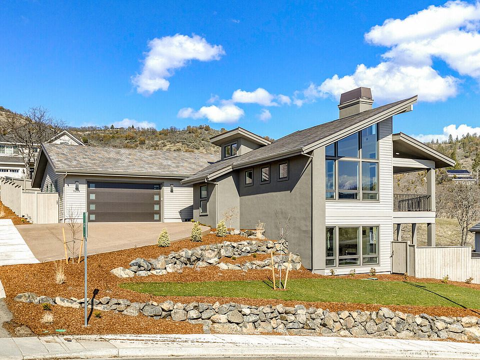 Beautiful views of the valley from this new contemporary style home located in the premier Saddle Ridge development. The great room has high vaulted ceilings and lots of glass to enjoy the views and abundant natural light. Large, island kitchen with Kitchen-Aid appliances, quartz counters and a pantry. The reverse living floor plan has the master suite on the main level. The lower level has 3 bedrooms and a family/bonus room. There is a huge, incredible deck that is an amazing outdoor living space. Two gas fireplaces. The two car garage is oversized. All fenced and landscaped. Earth Advantage certified for energy savings and reduced utility costs.