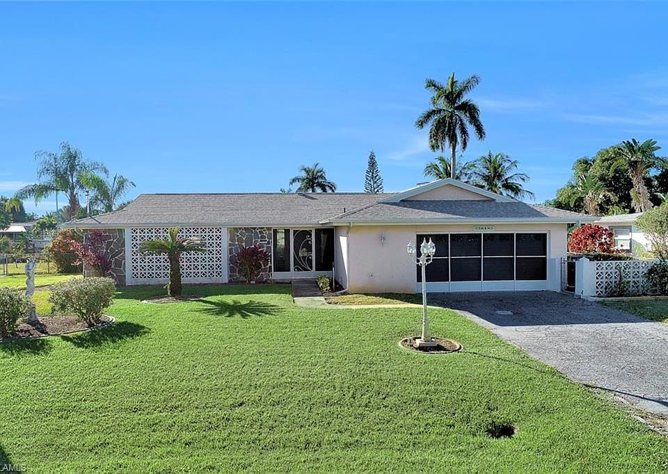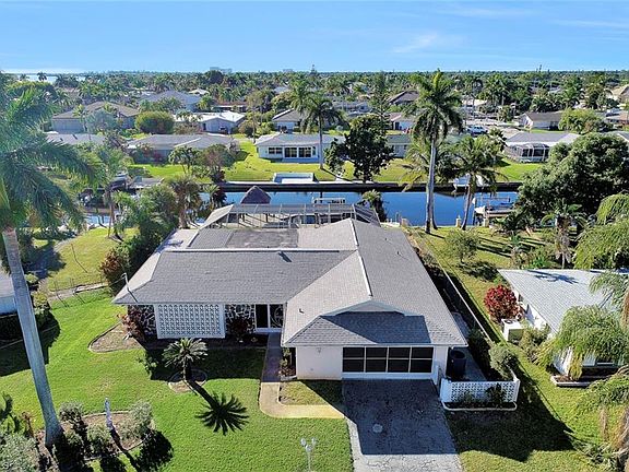 SAILBOAT ACCESS, YACHT CLUB, NO BRIDGES and PRICED TO SELL.. Built in 1966 this home has many features others don't. The back yard was designed for entertainment! A large under truss patio has loads of space for you, your family and friends. A gigantic screened pool area with room for plenty of lounge chairs AND a hot tub if you want one. Recently built dock has a 10K pound boat lift , and loads of space for tables and chairs for entertaining-and BONUS-A TIKI HUT where you can all sit and enjoy the Florida sunsets. This home has 1979 sq. feet under air, (UNUSUAL for 1966). Large bedrooms, bathrooms and family areas, a 2 CAR SCREENED garage (rare-most 1966 builds are 1 car). The garage is updated with a hurricane rated door. The AC is recent, the roof is recent and extra hurricane strapping was added at the time. Yes, it needs some updating, no doubt, but this home is solid and in great condition. At this price you won't find this location, this size, this dock, fenced in, mature landscaping or this 2 car garage. It's a great buy. Come and see it.