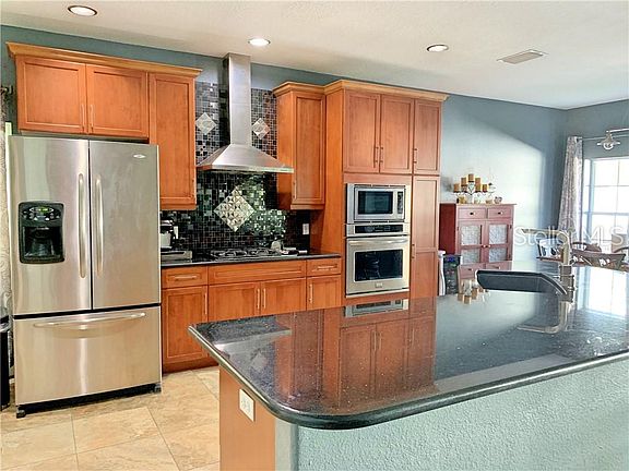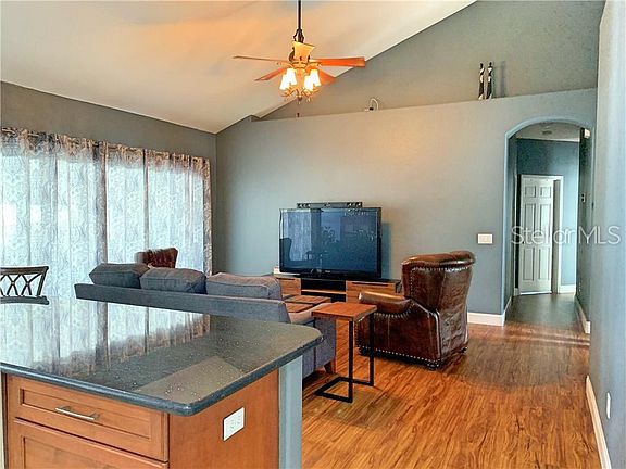 This open floor plan 3/2/2 home has been nicely remodeled. Updates include new flooring, kitchen, both bathrooms, fixtures, and paint. Granite counters, gas stove, wall oven and microwave. Large eating area in kitchen to include another area in kitchen for desk. Master bedroom is good size with a gas fireplace and remodeled bath. The closet is small but an attached room has a wall to wall wardrobe that remains with home. Come see to appreciate! Washer dryer included with sale and located right off kitchen with pantry closet. Exterior is low maintenance vinyl siding. New air conditioning unit (2017) and on demand water system. Water softener too! High ceilings, wall full of sliders to a large screened in porch with brick pavers, vinyl fence enclosing the back yard. Located in Wesley Chapel near all malls, I75, restaurants. LOW HOA, NO CDD. Roof is original. Current wind mitigation and 4 point inspection done.
