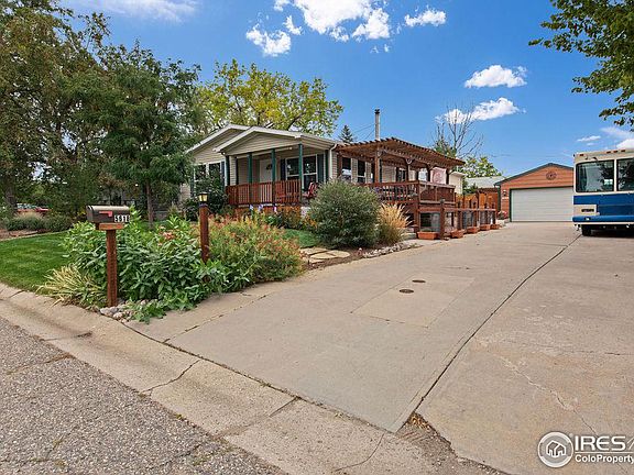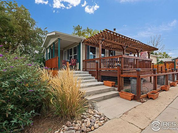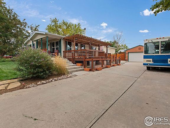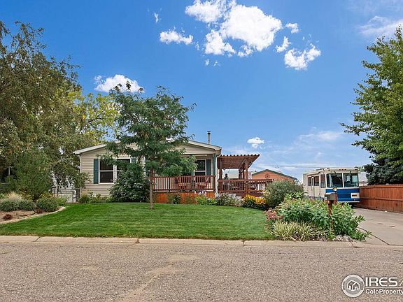 Come and discover this charming manufactured home built in 2015 located in the Cherry Park neighborhood in Loveland! With 1,508 sq ft of beautifully finished space, this home offers an inviting open floor plan including a gorgeous kitchen with stainless steel appliances, perfect for entertaining, a cozy fireplace, and no HOA. This home also features 2 bedrooms, 2 bathrooms, and an office. The outdoor space features a lovely porch, pergola, and beautiful mature landscaping. Enjoy the convenience of a 2-car detached garage and plenty of room to park as there is also enough parking for an RV. This home is a true gem for buyers seeking comfort, style, and a peaceful setting. Don't miss out, set up your showings today!
