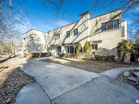 One of a kind property on Prospect with a stunning river view. This Art Deco style home features 5 bedrooms, 4.5 bathrooms, 3 fireplaces and over 5,450 finished sqft. Designed by a Chicago Architect with tons of great amenities. The open floor plans flows perfectly through the first floor with a cooks kitchen, large studio with tons of potential, and a great mud room! The second floor features a separate "wing" with two bedrooms that share a balcony as well as a private bath. Two additional large rooms are on the second and one has a private en suite bath. Step into your own Master Suite with a private bath, the large closets, private balcony and a private stair case that leads to your master. Walk out to your private wooded backyard and have an excellent view of the Illinois River. The yard is fully fenced in and boasts multiple sitting areas. The home is fully gated to ensure the upmost privacy! Don't miss your chance to see this landmark home in Peoria!