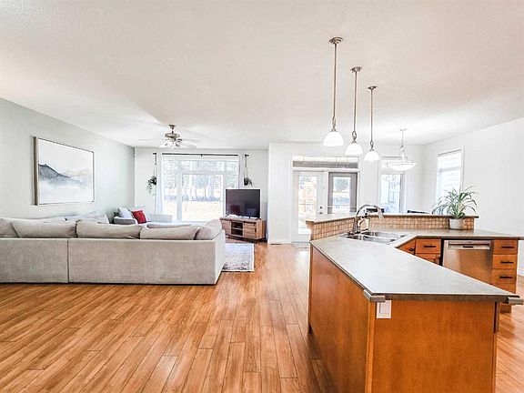 Welcome to Wilshire Estates! This stunning 1,845 sq ft bungalow sits on a beautiful 0.37-acre lot surrounded by mature trees and backing onto a peaceful greenspace — offering privacy and nature right at your doorstep. Inside, you’ll find 5 bedrooms, 3 bathrooms, and central air conditioning for year-round comfort. The open-concept living area is bright and inviting, with a gorgeous view of the backyard. The spacious kitchen features an oversized island with sink and dishwasher, walk-in pantry, plenty of cabinetry, under-cabinet lighting, and high-end stainless steel appliances. French doors from the dining area open onto a covered composite deck with a gas BBQ hookup — perfect for entertaining. The main level includes 3 bedrooms and 2 full bathrooms, including a lovely primary suite with a 3-piece ensuite and private deck. A dream mudroom/laundry room with sink leads to the oversized heated double garage. Downstairs, you’ll love the finished basement with in-floor heat, high ceilings, a wet bar, a family rec room, 2 additional bedrooms, and a 3-piece bath. It’s an ideal setup for movie nights, a home gym, or hosting guests. The fully fenced backyard features built-in cedar benches and planters, an apple tree, two sheds, a new brick patio, and RV parking. Recent updates include paint (2023), new smart kitchen and laundry appliances (2021), and hot water tank in 2023. Located in a family-friendly neighborhood close to trails, parks, and schools — this home truly has it all!