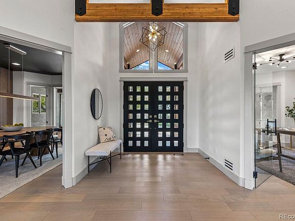 If you missed this fully remodeled, statement-making 4 bed | 5 bath home the first time around, now's the time to schedule your showing. From the moment you step into the open concept main level, the jaw-dropping vaulted ceiling and wood beam magnified great room take you to a place that makes you want to be a better version of yourself. The kitchen defines "chef’s oasis": grounded by Cambria quartz counters, Bluestar appliances, and custom cabinetry, the thoughtful details are well worth lingering over. This space opens to a large deck, enveloped by soaring pine trees and accented by multi-hued mountain views. Offering the soothing rhythm of a water feature, this home is well-situated on a private 2.4 acre lot. Moving to the primary suite, the first thing you see is a laser perfect view of Pike’s Peak. The primary bathroom lets you start every day as if you’re on vacation: with an enormous steam shower, quartz counters, and a standalone tub, you might find yourself pressing pause on productivity. The beautifully lit, wood panel accented dining room is perfect for entertaining. Finishing off the main floor are a 2nd bedroom with en suite bathroom, office, laundry room, and powder room, all elegantly updated, and a 4-car garage. Accessed by either a statement or secret staircase, the lower level recreation room is straight up seductive. Featuring a wood slat wall, secret playroom, and multifunctional wet bar with an impressive appliance package and walnut accent ceiling, the lighting alone makes you want to throw the party of the year. An inviting family room opens to a glass-enclosed, 4-season outdoor living space with fireplace and built-in grill. Rounding out the lower floor are a theater, workout room, wine room, and 2 more beds and baths. There are simply too many upgrades to list here, so please consult the features list. Simply stated, if you’re looking for the home that illustrates luxury and inspires you to live your best life, you’ve found it.