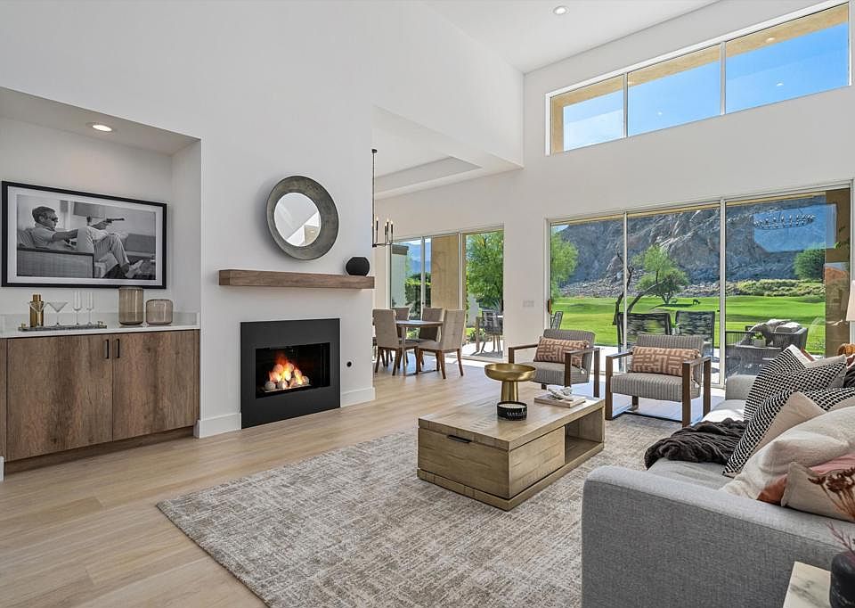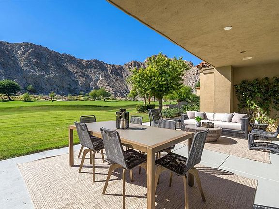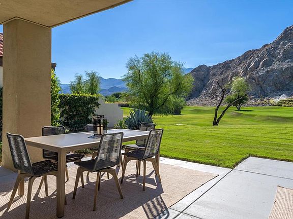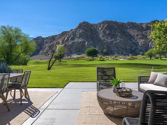 SOAK IN THE MOUNTAIN VIEWS!COMPLETELY remodeled 3 bed, 4 bath with SPECTACULAR western mountain views positioned on a large pool sized lot overlooking the 2nd fairway of the Jack Nicklaus Private Course. A private courtyard welcomes you into a bright and inviting living space with breathtaking views of the majestic Santa Rosa Mountains. The 2 story vaulted ceilings showcase open concept living with custom tile floors, light paint tones w/ level 5 smooth finish, wet bar, updated gas fireplace and soaring windows overlooking the golf course & mountains. Take in the gourmet kitchen w/ its waterfall center island, custom cabinetry, high end commercial grade appliances, custom quartz kitchen and multi-use area. The main bedroom suite is highlighted by a vaulted beamed ceiling, custom spa like bathroom w/ Restoration Hardware double vanity, soaking tub, oversized tiled shower glass wall and walk in closet. Guest bedroom 2 features built in coffee bar area, en suite bath with custom tile shower, and front courtyard patio access. Bedroom 3 is spacious with en suite bath and walk in closet. The laundry area boasts a quartz waterfall counter to house new W/D with bench seating area leading to an oversized garage with new flooring and finish. New A/C and furnaces for comfort and efficiency. Private neighborhood pool/spa is a short walk out your front door. This stunning home has the views and finishes.Seller is accepting back up offers!