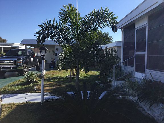 So much for so little! This immaculate turn key home can be yours for your winter visits. Size is 46x35. the shed has storage and the washer and dryer. The home has 2 bedrooms and 2 full baths. Master has.. shower only and the 2nd bath has tub and shower. Both bedrooms are 14x12 many windows have been replaced. All recent new flooring throughout except for the lanai. Kitchen features a side by side refrigerator and built in desk area. All walls throughout have been neutrally painted to look like a brand new home inside. Shows beautifully! New Vinyl siding in 2017. new ac unit. In 2018 Extensive landscaping. Four palm trees in front yard. Roads re paved in 2017 Complete new roof 2019. New addition of a 11x27 Florida room. Total sq ft 1511, 1104 sq ft under air.
