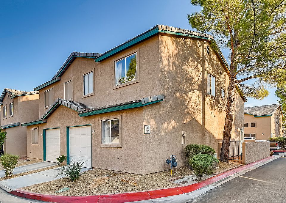Just 10 minutes west of the Vegas strip! Wonderful 2 level townhouse located in gated community with POOL and SPA. 2 bedrooms (1 up/1 down) + 2 Bathrooms and a bonus cozy loft. Attached 1 car garage with laundry and direct access to the home. All appliances (Fridge/Dishwasher/Washer/Dryer) are included! Large primary bedroom upstairs with walk-in closet and ensuite bathroom w/shower. Downstairs hallway bathroom has a shower/tub. Granite counters in the kitchen. Great use of space and a nice sized patio too. Turn key/ Great investment opportunity! View the Virtual 3D tour for more. This one will go fast!