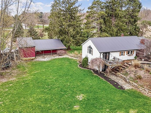 Welcome to your very own peaceful paradise! This stunning, fully remodeled home is nestled on nearly 9 acres of serene landscape, offering luxury and comfort. Highlights include: Two fireplaces, gorgeous cherry hardwood floors, a gourmet kitchen featuring a commercial-grade refrigerator and stove, copper sink, concrete countertops, spacious walk-in pantry, water softener system (2019), new propane furnace (2024) and metal roof (2019). Enjoy the outdoors in the impressive 24x30 screened structure w/electricity and a concrete floor, ideal for entertaining. The partially finished full basement includes French doors that open to a charming patio to enjoy those sunny days. The primary suite is a true retreat with French doors leading to a private deck and a luxurious copper slipper soaking tub. Additional features: -acre private pond. This property also has a 3+ car detached garage and a RV garage w/electric and concrete flooring, Versatile 20x20 outbuilding. An exceptional rare find!