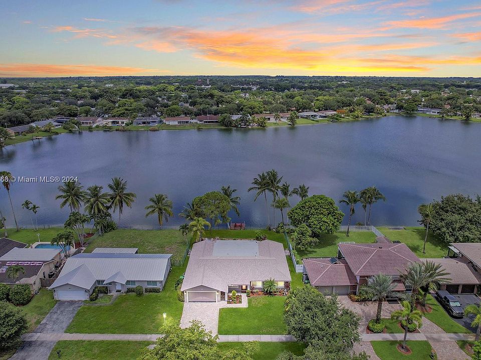 FIND TRANQUILITY IN EACH ROMANTIC SUNSET FROM YOUR OWN PRIVATE DOCK IN THIS EXQUISITE 4 BED, 2 BATH LAKEFRONT RETREAT NESTLED IN THE SOUGHT-AFTER FLAMINGO GARDENS COMMUNITY OF COOPER CITY. FEATURING OVER 2,600 SQUARE FEET OF LIVING SPACE, THIS RESIDENCE STANDS AS ONE OF THE LARGEST HOMES IN FLAMINGO GARDENS. POSITIONED ON AN EXPANSIVE 8,850 SQ FT FENCED LOT, THIS HOME OFFERS BREATHTAKING LAKEVIEWS CAN BE ADMIRED FROM THE CENTRALLY LOCATED KITCHEN, DINING AREA, FAMILY ROOMS & PRIMARY SUITE. BEAUTIFUL LARGE SOCIAL SPACE ENHANCES THE LIVING EXPERIENCE. WHETHER LOUNGING BY THE POOL OR SAVORING THE PEACEFUL AMBIANCE OF THE LAKE AND GREEN SURROUNDINGS THIS HOME IS A TRUE RETREAT. UPGRADES INCLUDING IMPACT WINDOWS, NEW ROOF 2022 & 2023 AC UNIT. AWESOME LOCATION, COOPER CITY SCHOOLS, NO HOA.