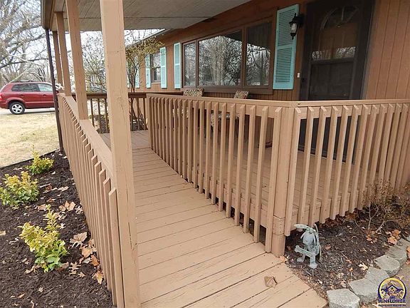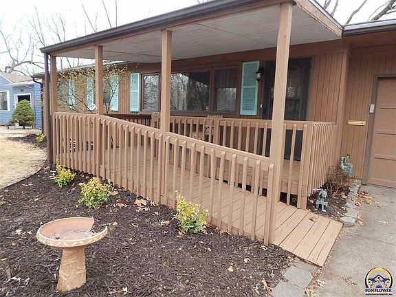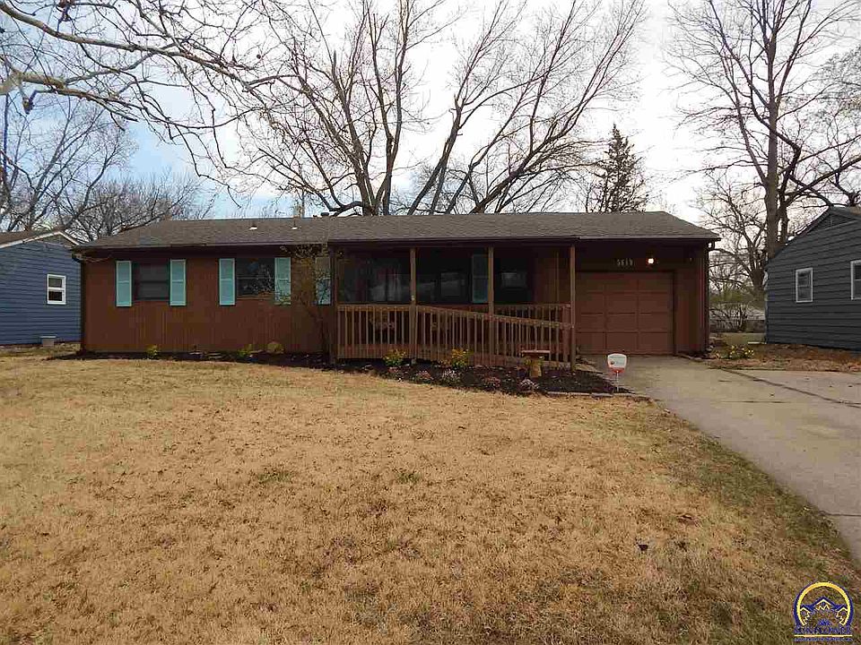 Expanded ranch under deep shade on a quiet street. Brand new paint and carpet, landscaping, updated kitchen, new sewer 2010, and bathroom remodel. Large family room addition w/ vent-less gas fireplace and built in bookcases, sliding door to deck in fenced backyard. Extras include pantry space, attic fan (perfect for fall), extra parking pad, garden shed and more. $1500.00 appliance allowance. Listing agent is licensed real estate agent in the State of Kansas and has equitable interest in property.