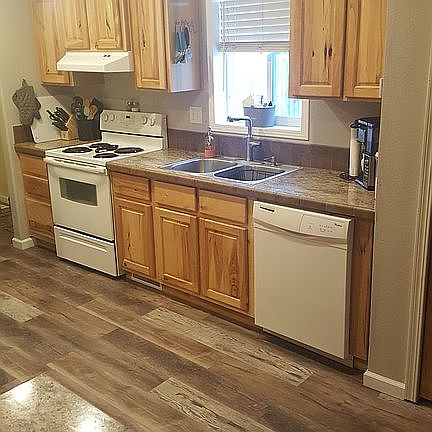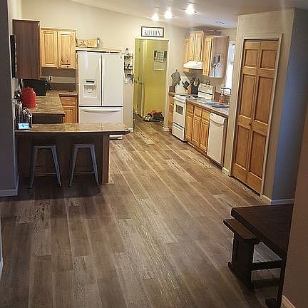 Beautiful 4 bedroom, 2 bathroom home with brand new seamless flowing vinyl flooring throughout the entire house. Fresh paint throughout with ship lap accent walls. Living room is updated with white washed wood paneling giving it just the right touch to give you that warm and cozy feeling. Has all the amenities a family could need including a pantry, laundry room, and custom built-in shoe rack. Outdoors you will find a front porch and a deck outback with a hot tub which is a great space for entertaining. The fenced in yard has luscious green grass that is great for pets along with a green house and two sheds for storage, graveled driveway and cement slab for the front patio. This house is priced right and is ready to be your new home!