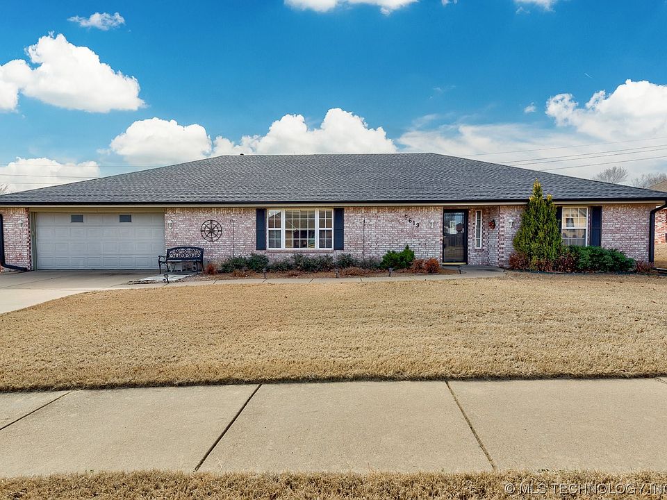 Quality built, full brick home with 4 spacious bedrooms and 3 living areas. Kitchen with granite, electric cooktop, and double ovens. Split floor plan with enclosed sunroom. View of open field from backyard. Oversized two car garage with workshop.